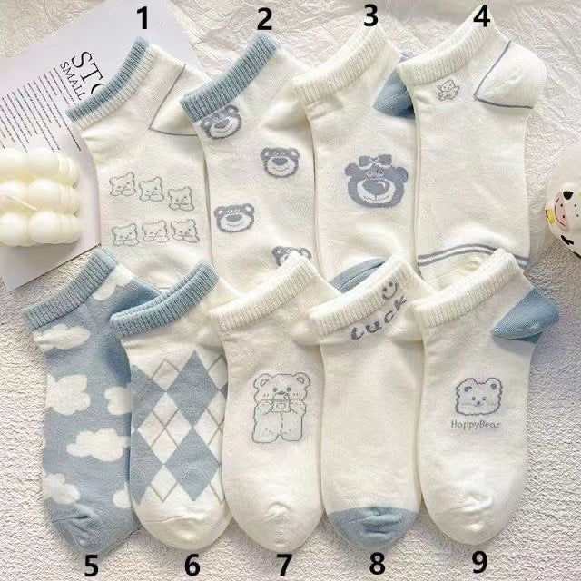 These super soft and lightweight ankle socks add a touch of cuteness to your daily outfits! Featuring adorable teddy bear and cloud prints, these socks are perfect for cozy home wear or trendy street style. The light polyester fabric is breathable and adapts to your feet, while the reinforced heel and toe provide extra durability.